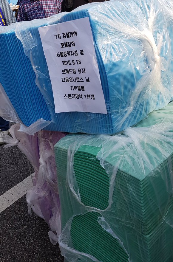 자신들의 할 수 있는 일을 한다. 사진도 시민들이 앉을 때 쓰는 스펀지 자리 방석을 천 개나 기부해 나눠줬다.