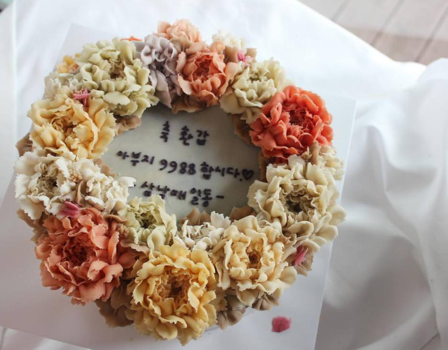 위에 꽃들은 조화가 아니라 전부 먹을 수 있는 앙금이고 아래는 떡임