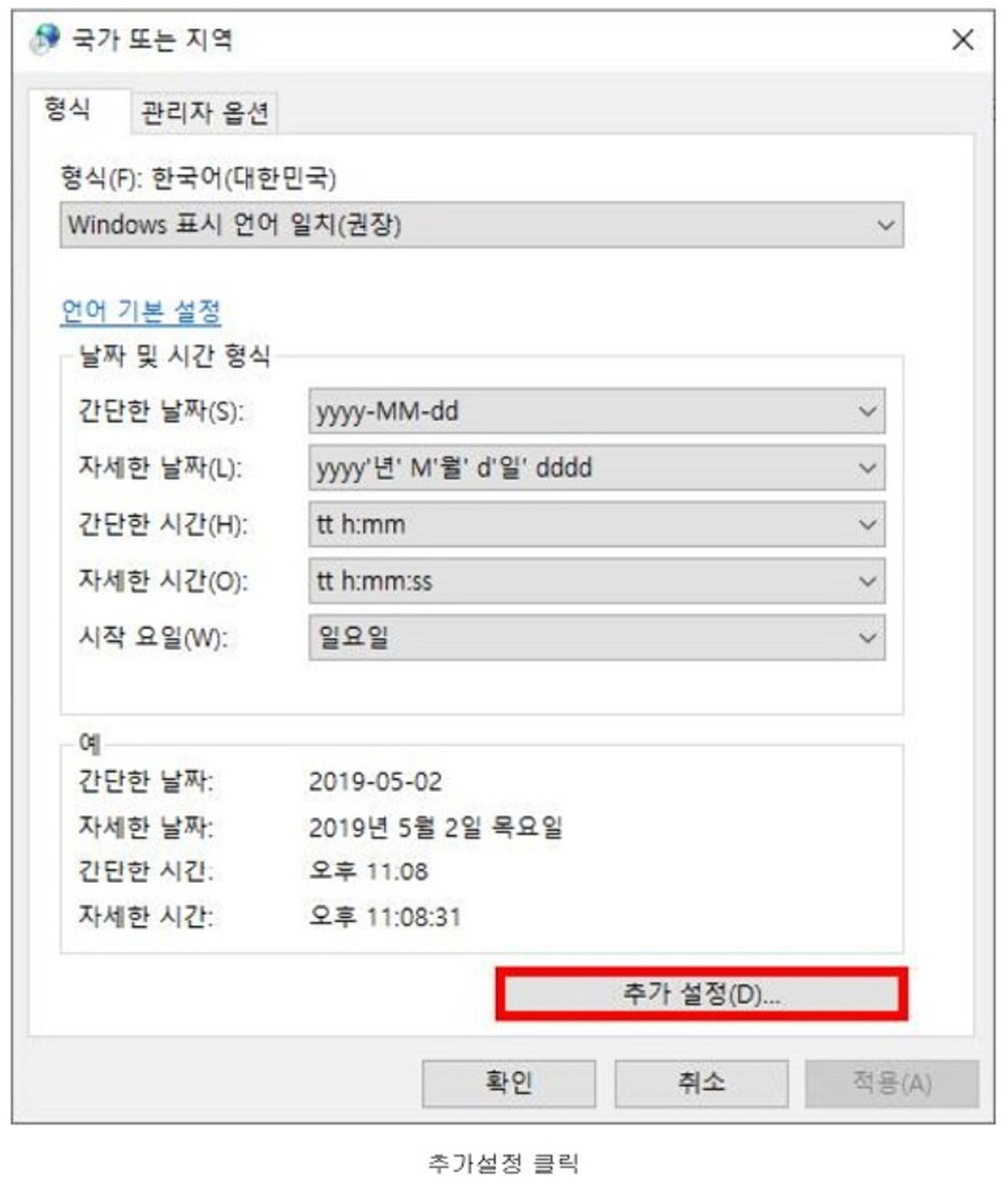 간단한 윈도 꿀팁이네요. 몰랐던 내용입니다. 점점 더 주어진 환경에 그냥 얹어서 살다 보니.. 한 가지 더 간단한 꿀팁이 보이네요 '2019-05-04 토' 이렇게 보니 조금 길다 싶은 분은 위의 내용 중 'yyyy-MM-dd ddd'에서 yyyy를 yy로 바꿔주시면 '19-05-04 토'로 나옵니다. 찾아보면 더 재미있고, 더 편하면서 신기한 기능들이 많이 있는데 붙잡고 늘어지다 보면 도낏자루 썩는 줄 모르고 시간이.. 쿨럭~
