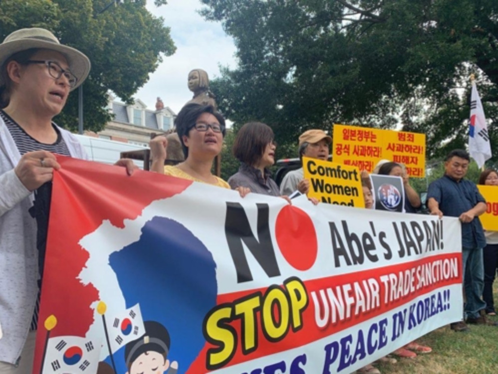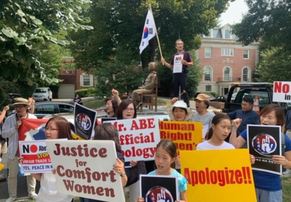 한인 20여 명, 워싱턴 DCDC 일본대사관 앞서 '할머니께 정의를' 구호 외치며 집회