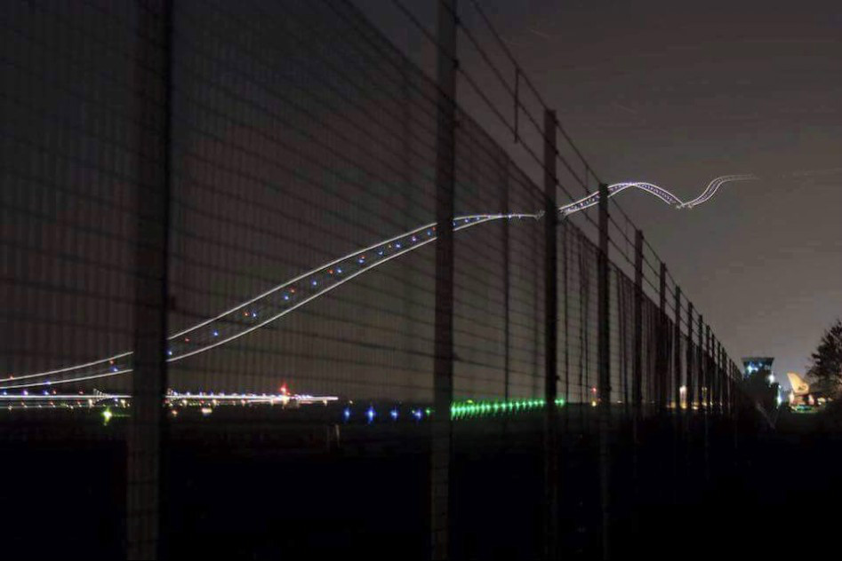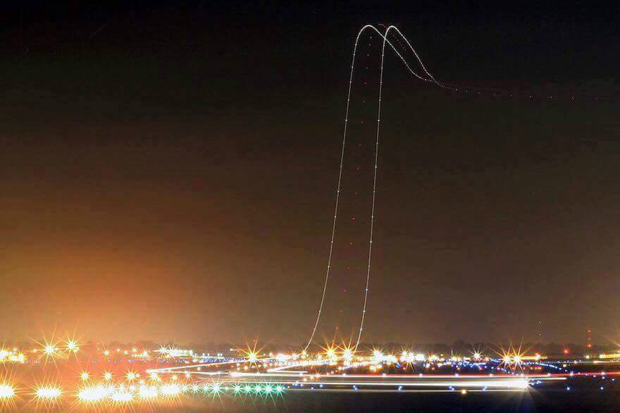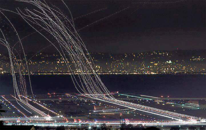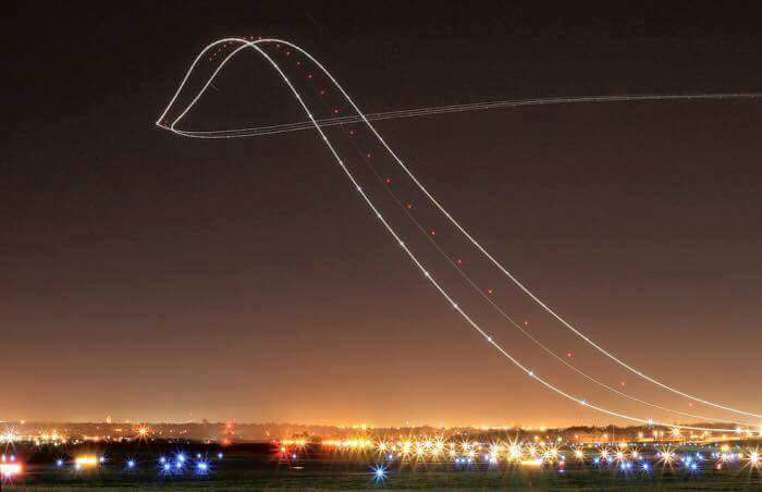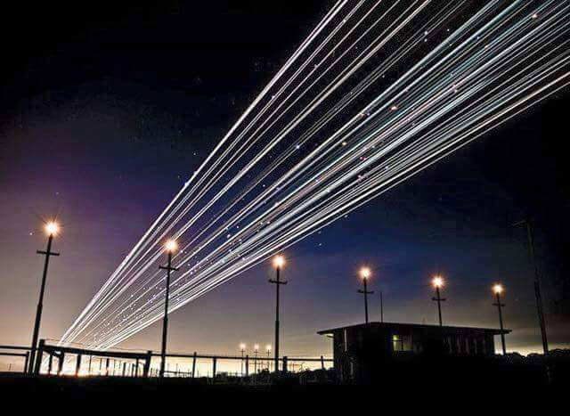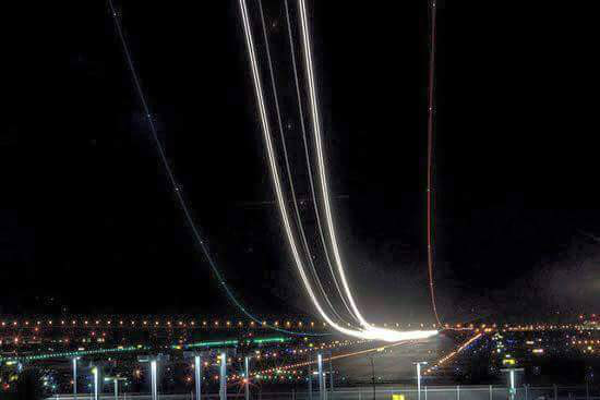 장노출로 찍은 항공기의 이착륙