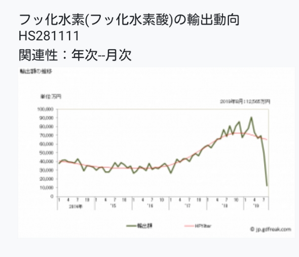 일본 불화수소 수출규모 수치가 그래프로 나왔는데, 그동안 한국에 팔지 않아도 다른 외국에 판매하면 된다던 일본의 주장이 무색할 정도로 쪼그라들었음을 확인할 수 있었습니다 . 이에 대한 2ch 주제글과 댓글 번역해 보았습니다 .