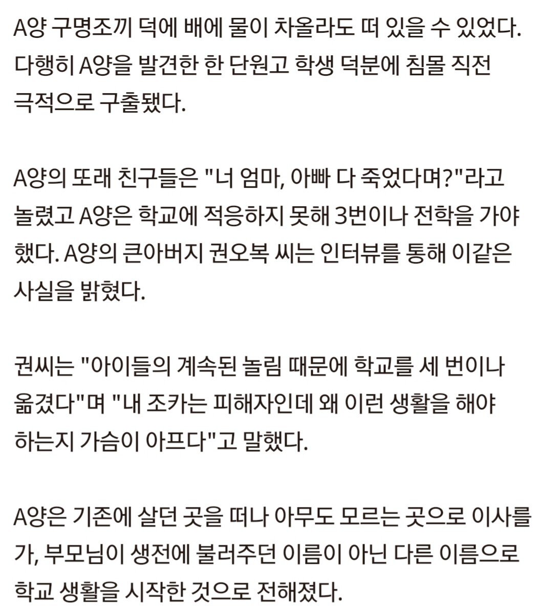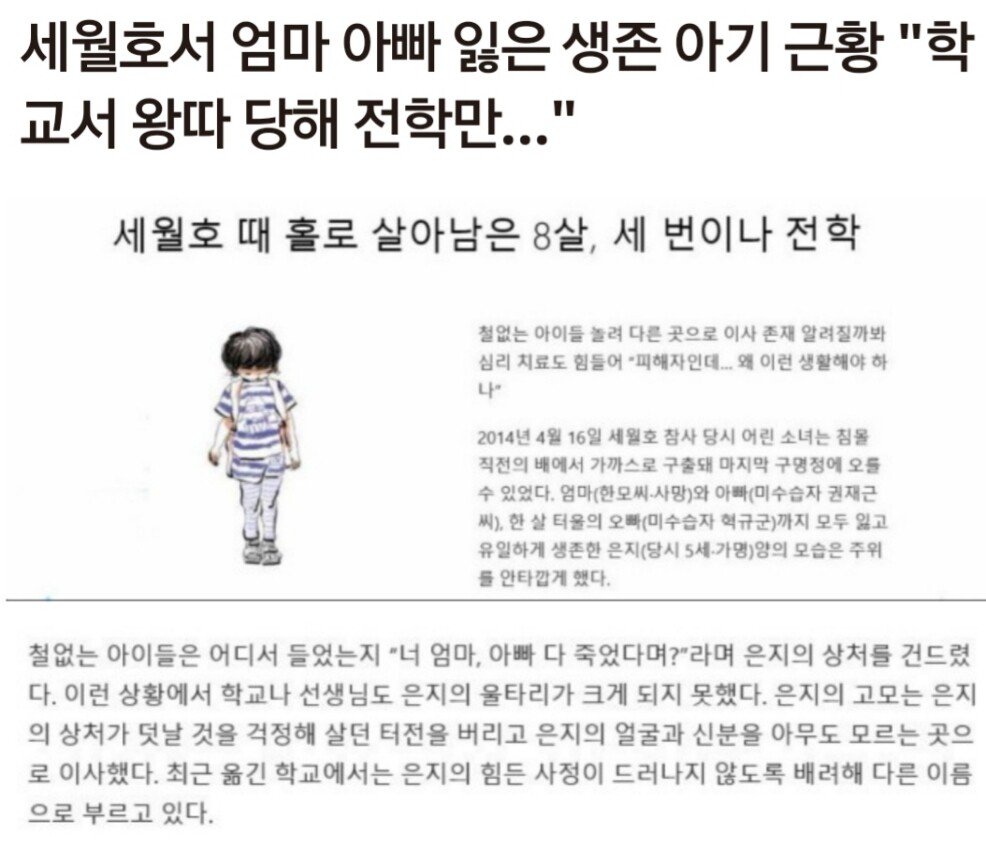 세월호에서 고아됐다고 왕따당한 생존 아기